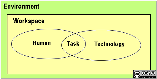 A task is accomplished by the interaction of the employee and the machine in a particular workspace, which is contained in a particular environment. The workspace is described in terms of its size and the layout of the equipment/machinery. These two factors will have an effect on the posture of the worker and the reach distances, and with a resultant effect on comfort and efficiency. The environment is described in terms of its temperature, lighting, noise and vibration.