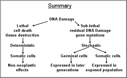The clinical picture depends on which of the cellular outcomes is predominant. Two distinct clinical effects exist: DETERMINISTIC and STOCHASTIC.